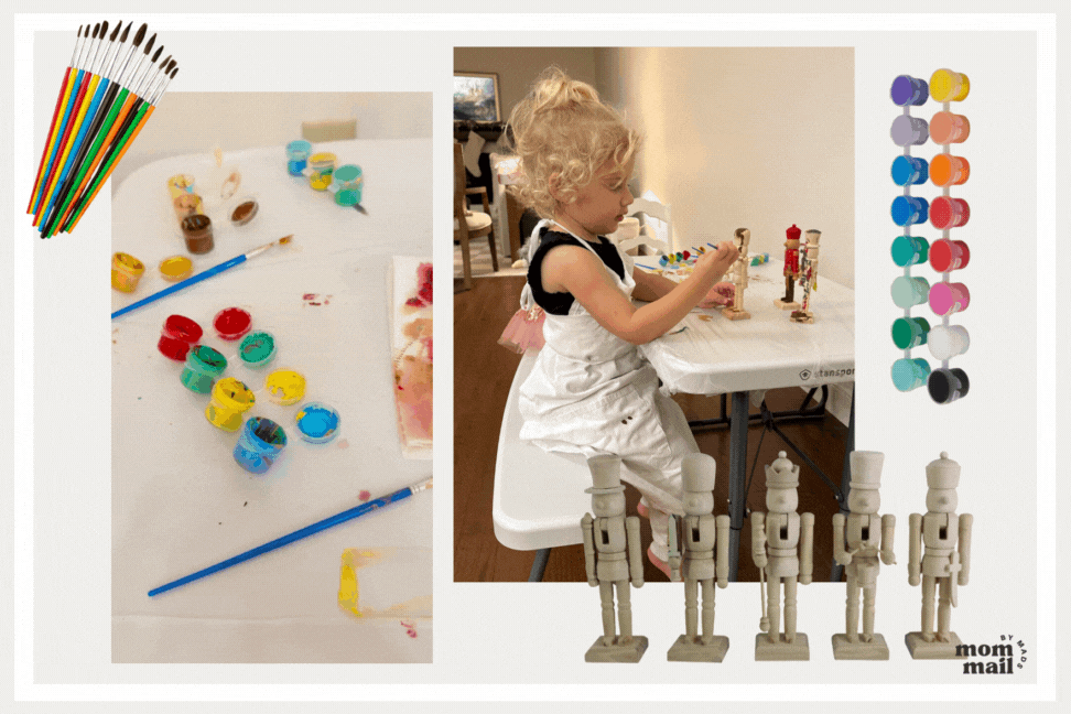 An easy and low-cost craft is decorating these wooden nutcrackers (you can get five of them for less than $7!) from Michaels. Also PSA, if you didn’t know, you can order for curbside pickup so you don’t have to deal with the chaos that is a Michaels store during the holiday season.
