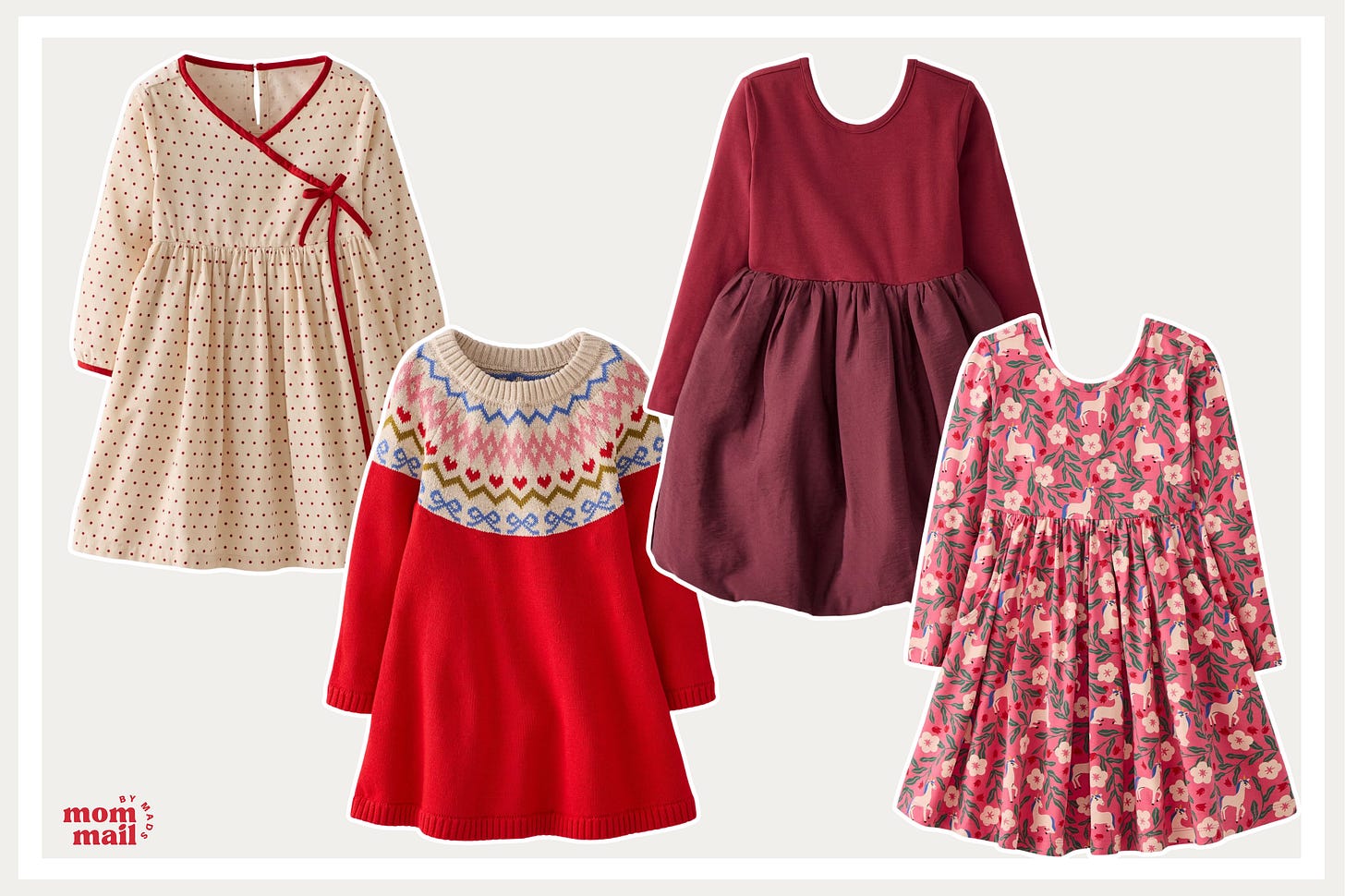 School Celebrations: Holiday Skater Dress - This dress style is our go-to for school (soft and stretchy + they wash great!) so we snag a few new prints every time Florence sizes up. She’s currently obsessed with dresses that have pockets (aren’t we all?!), and I love how easily these pair with coordinating HA leggings. This time around we picked the unicorn forest print, which is subtly holiday but can easily be worn into the new year, but they also have a red bow design and poinsettia pattern for more festive vibes. Shop Here