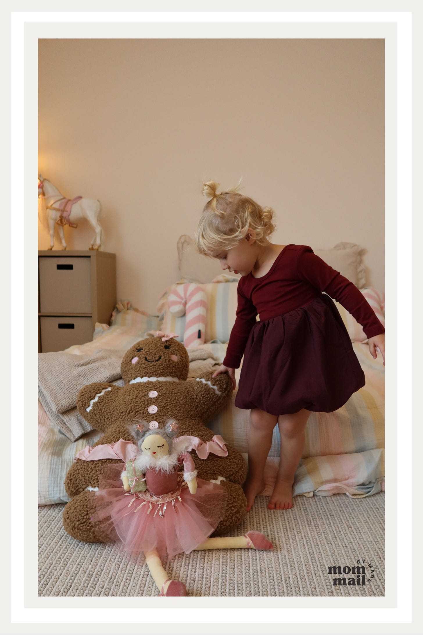 And every night Florence requests that we read Jan Brett’s book version, which has the most magical illustrations. Pair this beautiful hardcover story with a cute stuffed nutcracker or themed pajamas and it’s a truly festive package for the holidays.